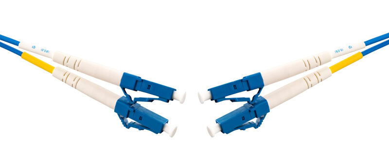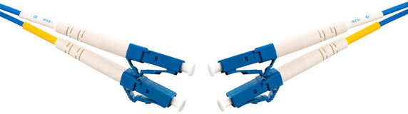 Fiberoptic patch cord singlemode G657A with blue 2mm duplex cable and LC/UPC-LC/UPC connectors.