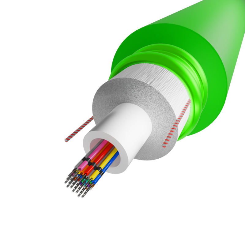 Fiber optic circuit integrity (fireproof) cables designed to function for at least 90 minutes in fires up to 750°C. Suitable for installation indoors and/or outdoors in ducts. Halogen-free, CPR and fire rated to meet the requirements for indoor installations. The construction with corrugated steel reinforcement makes the cable 100% rodent-proof.