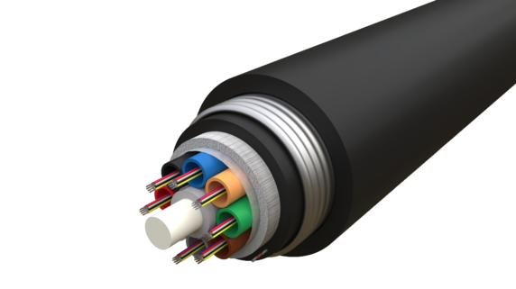 Cables designed for direct burial installation and has full rodent protection. It attains its mechanical robustness and functional performance through its double sheath and corrugated steel tape (CST) reinforcement. Needs no further protection at underground installations. The cable is based on a multi loose tube construction with SZ design around a central strength member of fiberglass-reinforced plastic (FRP) which facilitates mid-span access.