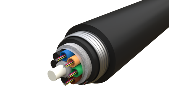 48F G652D armored cables designed for direct burial installation and has full rodent protection. It attains its mechanical robustness and functional performance through its double sheath and corrugated steel tape (CST) reinforcement. Needs no further protection at underground installations. The cable is based on a multi loose tube construction with SZ design around a central strength member of fiberglass-reinforced plastic (FRP) which facilitates mid-span access.