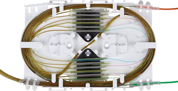 Splice trays are used to loop excess fiber, protect and fix the splice protection sleeves. The trays are available in different designs and sizes to fit different ODFs, termination boxes, closures and cabinets.