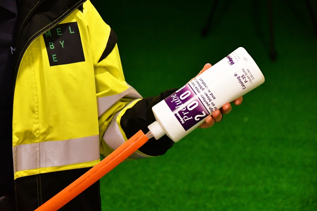 With the Polywater® Prelube 5000TM, you get a lubricant specifically designed for blowing small diameter microfibre cables. This lubricant has a simple application, and the lubricant spreads further into the microducts to provide a minimal friction between the fibre and duct.