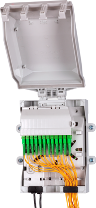 The Fiber Optic Box MDB-S is a durable fiber optic box, designed for various fiber organizers inside. The box can be configured to address a wide range of fiber optic splice and/or connectivity applications for PON, GPON and 5G networks. The engineered design provides IP65 protection from water / dust ingress and IK10 impact resistance to keep your critical network connections safe inside. The MDB S provides the ideal splicing solution for multi dwelling unit fiber distribution points or outdoor pole mounted splice applications.
