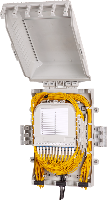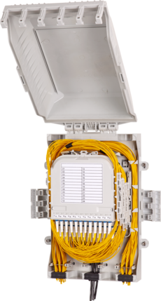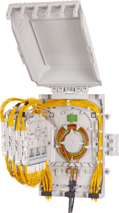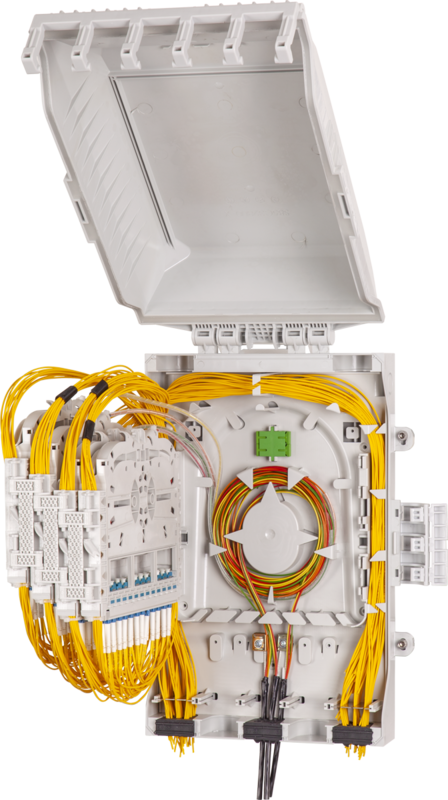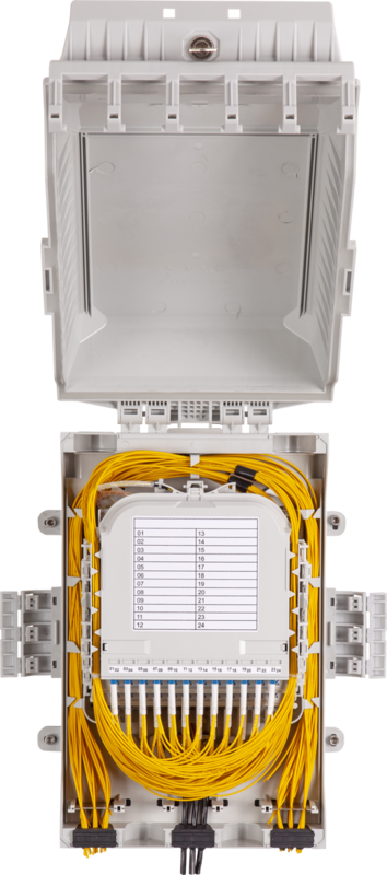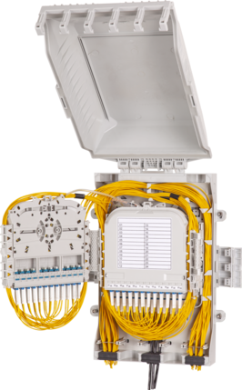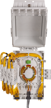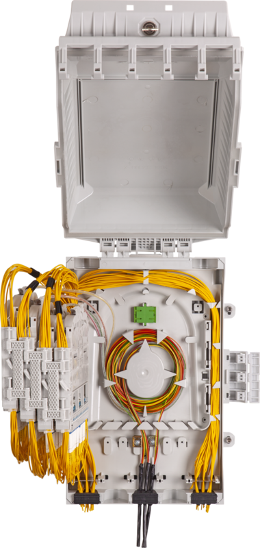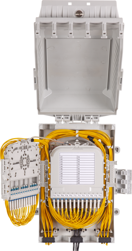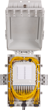 The Fiber Optic Box MDB-M is a durable fiber optic box, designed with the highly flexible FibeRoad system inside. The box can be configured to address a wide range of fiber optic splice and/or connectivity applications for PON, GPON and 5G networks. The engineered design provides IP65 protection from water / dust ingress and IK10 impact resistance to keep your critical network connections safe inside. The MDB M provides the ideal splicing solution for multi dwelling unit fiber distribution points or outdoor pole mounted splice applications.