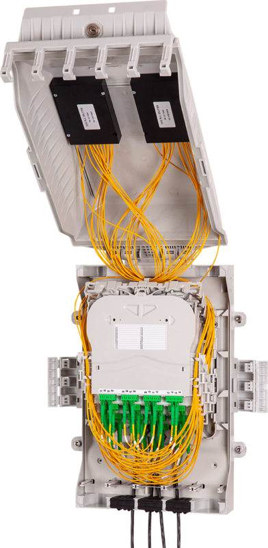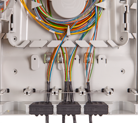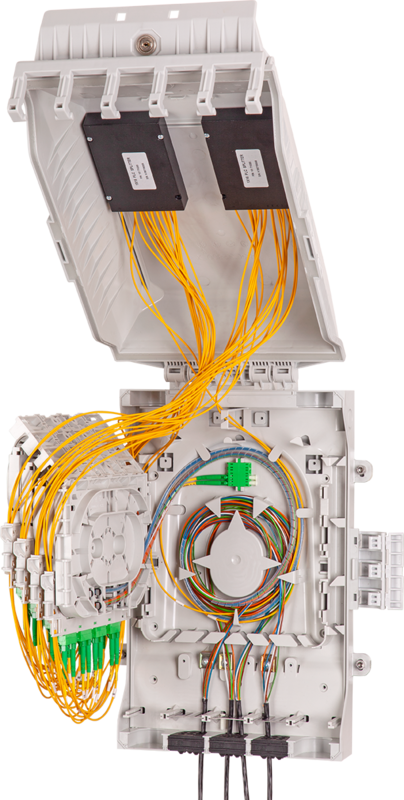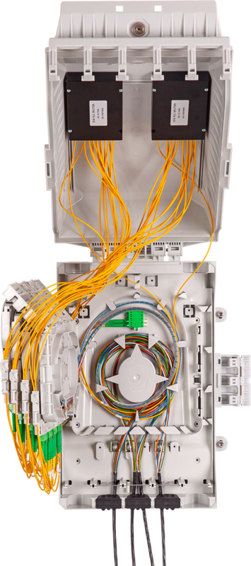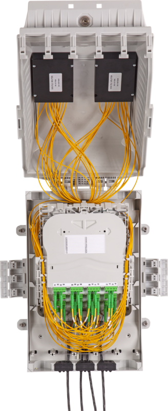 The Fiber Optic Box MDB M is a durable fiber optic box, designed with the highly flexible FibeRoad system inside. The box can be configured to address a wide range of fiber optic splice and/or connectivity applications for PON, GPON and 5G networks. The engineered design provides IP65 protection from water / dust ingress and IK10 impact resistance to keep your critical network connections safe inside. The MDB M provides the ideal splicing solution for multi dwelling unit fiber distribution points or outdoor pole mounted splice applications.