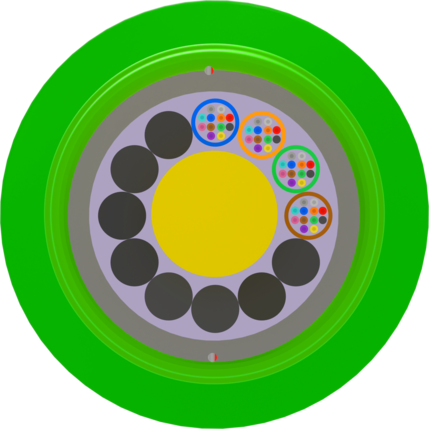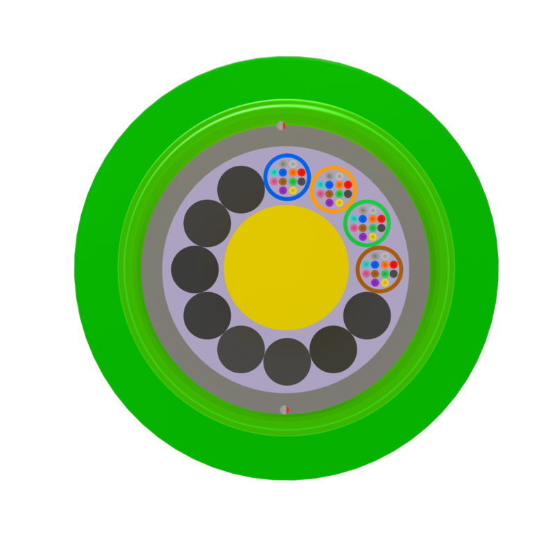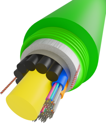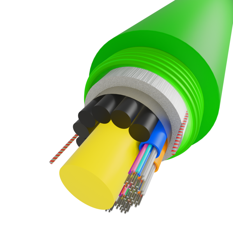 Fiber optic circuit integrity (fireproof) cables designed to function for at least 90 minutes in fires up to 750°C. Suitable for installation indoors and/or outdoors in ducts. Halogen-free, CPR and fire rated to meet the requirements for indoor installations. The construction with corrugated steel reinforcement makes the cable 100% rodent-proof.