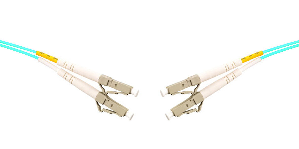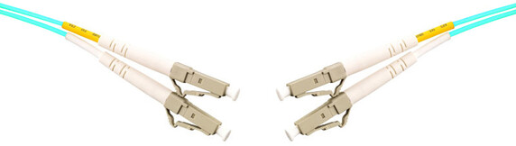 Fiberoptic patch cable multimode OM3-300 50/125µm with aqua 2mm duplex cable. Halogen-free according to EN 60754-1/2 and flame retardant according to IEC 60332-2-2 and IEC 60332-3-24. Meets the requirements of IEC 61300 and TELCORDIA GR-326-CORE. ID marked with a unique number for full traceability and delivered with individual measurement protocols.