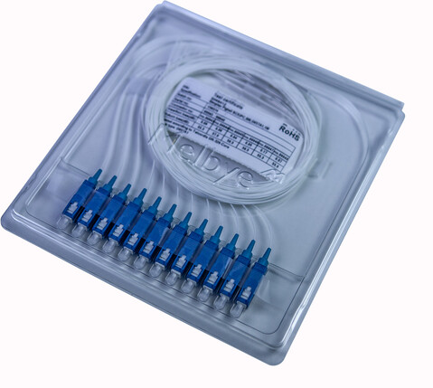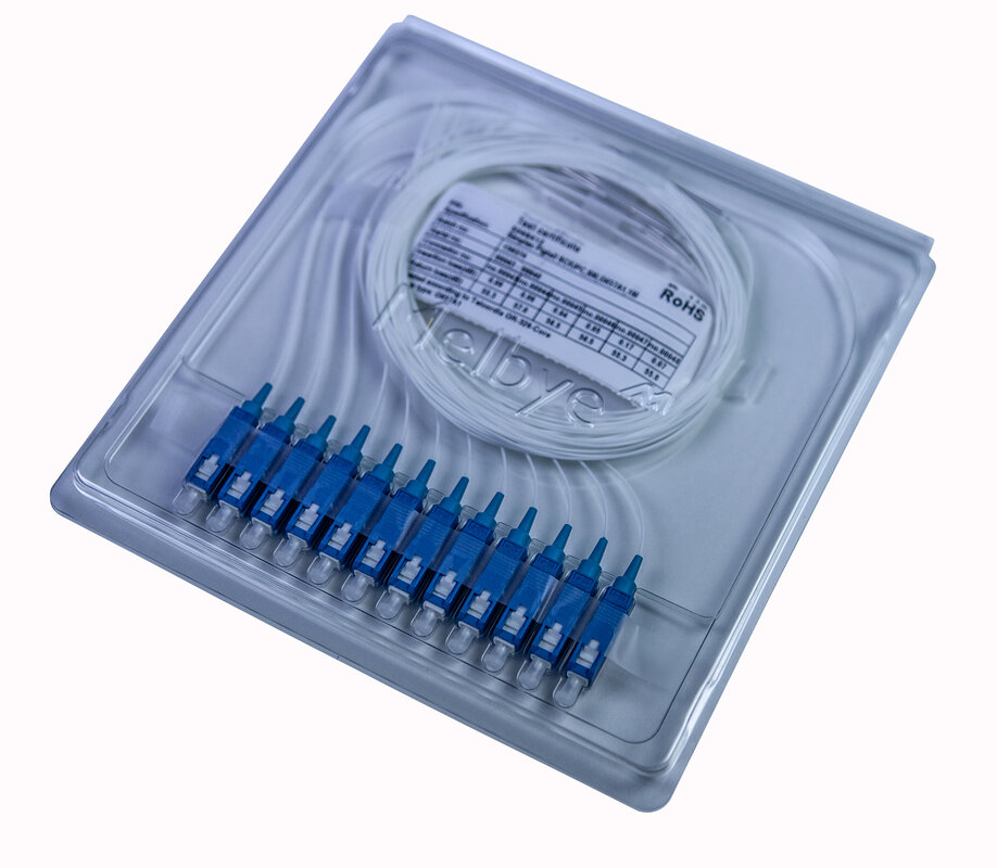 Fibreoptic pigtail, singlemode G657A1 900µm with one pre- terminated connector. To be used for splicing on a fibreoptic cable. Halogen-free according to EN 60754-1/2 and flame retardant according to IEC 60332-2-2. Meets the requirements of IEC 61300, EN186000-1, EIA/TIA-455 and TELCORDIA GR-326-CORE/GR-63. ID marked with a unique serial number for full traceability to component-level. Each package comes with individual measurement protocols. With pre-mounted 45 mm heat shrink sleeves.