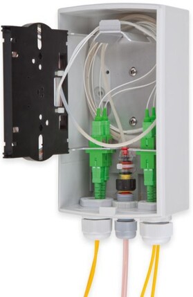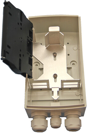 The ORM 8 optical distribution box is designed for the placement of 8 optical connectors both indoors and outdoors. The distribution box may be complemented by a simple bracket, which enables it to be post-mounted.