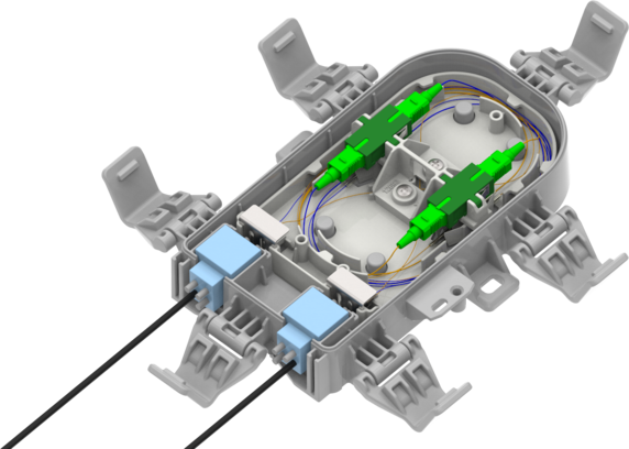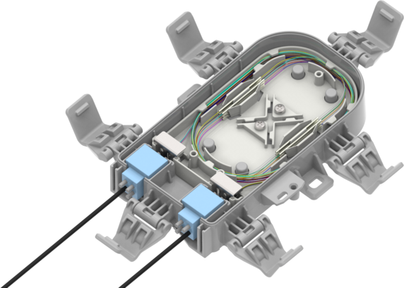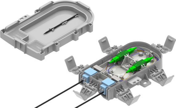 The COYOTE® STP-JR is a tough, compact splice closure which supports straight splice, splice to drop/branch and internal splitter/connector solutions. It’s ideal for applications in the FTTx distribution network for splice applications of 12 fibers or less and connectivity solutions. It’s also ideal for blown fiber cable and microtube cable applications. It supports use of traditional buffer tube cables.