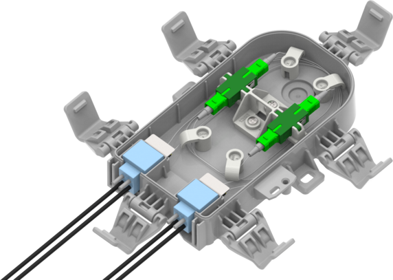 Inputs / Outputs (quantity × range) 2× 2.4–14 mm Grommets (type and number of used grommets) Grommets System – 2 pcs Ingress Protection IP68 Impact Protection IK10 Flammability Degree V0 Material PC Color light gray RAL 7035 Dimensions (H × W × D) 200 × 125 × 49 mm Weight 0.4 kg Environment outdoor Number of Splices 1–12 Number of Connectors 1–12 Connector Type LC or SC -